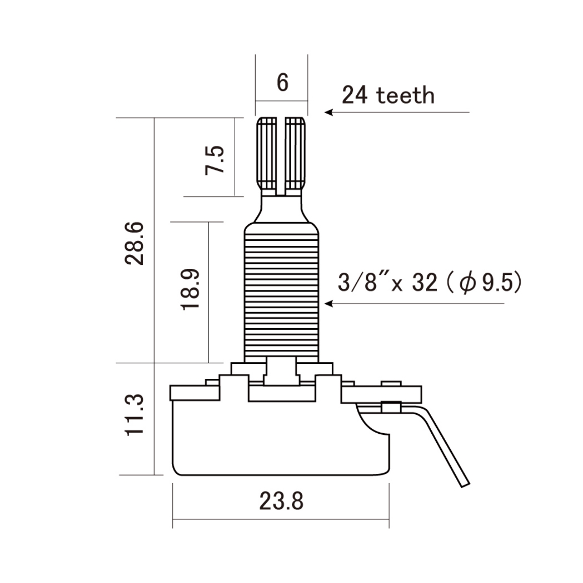 【SCUD】【ポット】 CTS製ポット インチサイズ ロングシャフト 500KΩ Aカーブ CTS-A500L